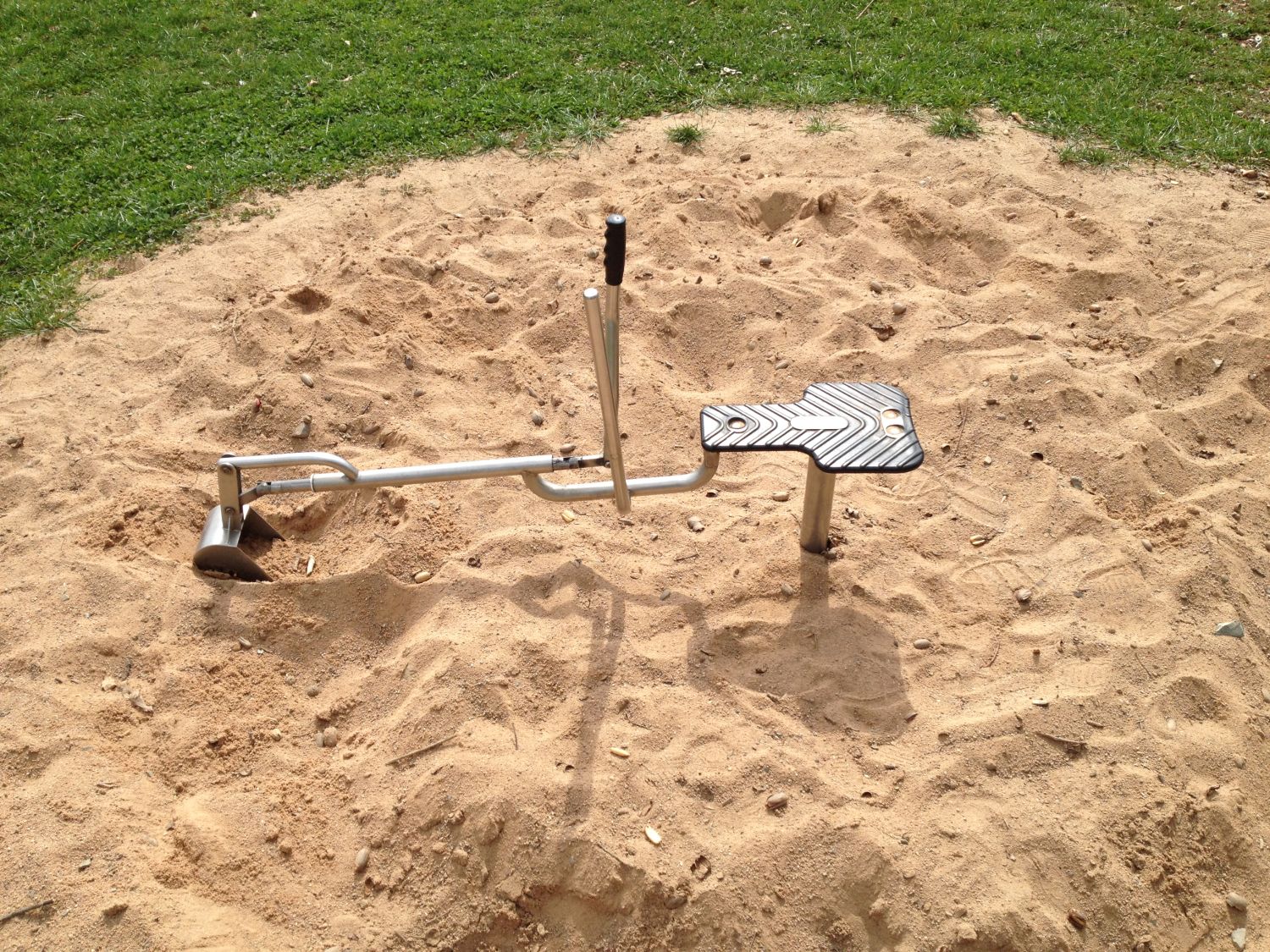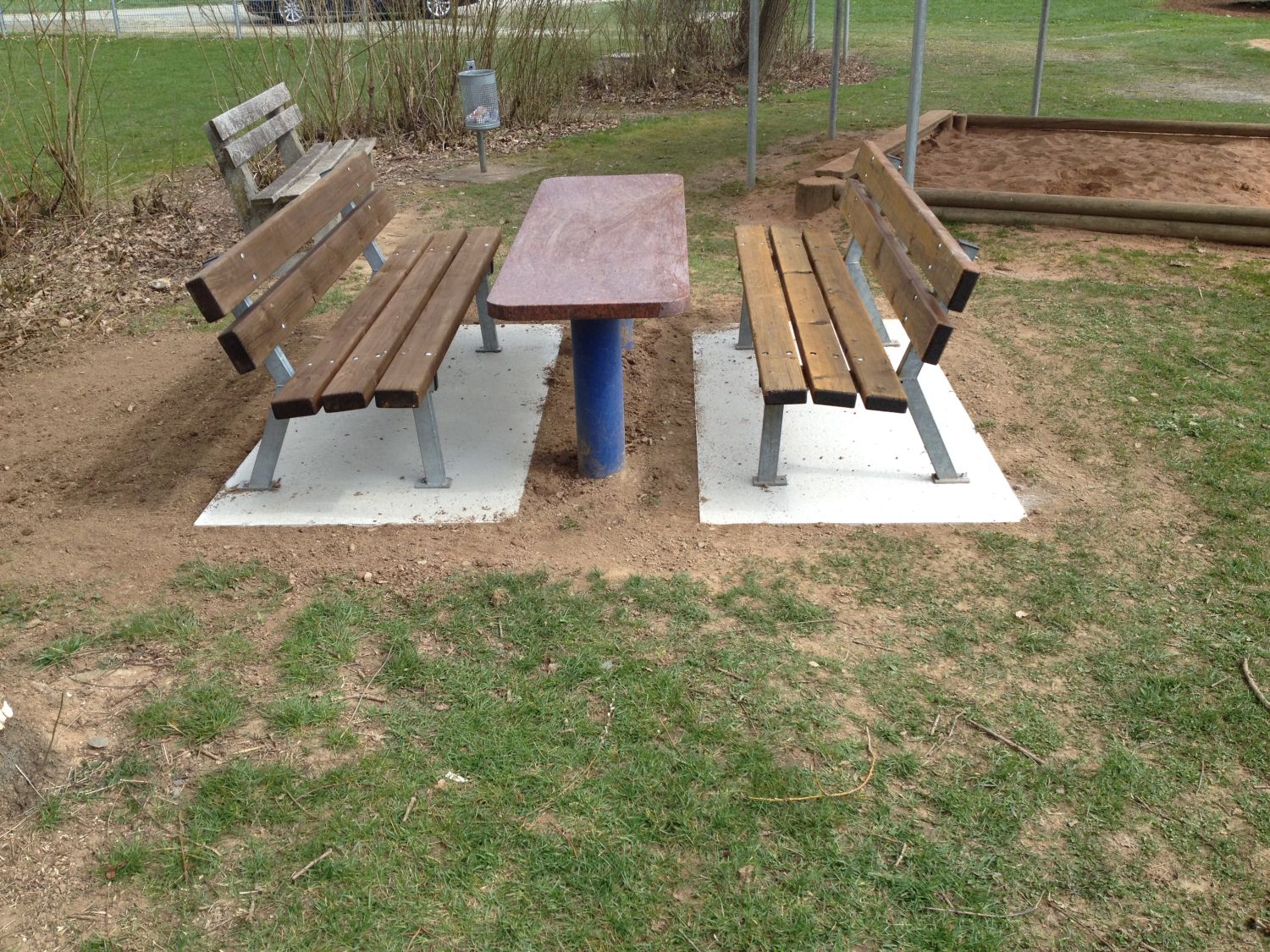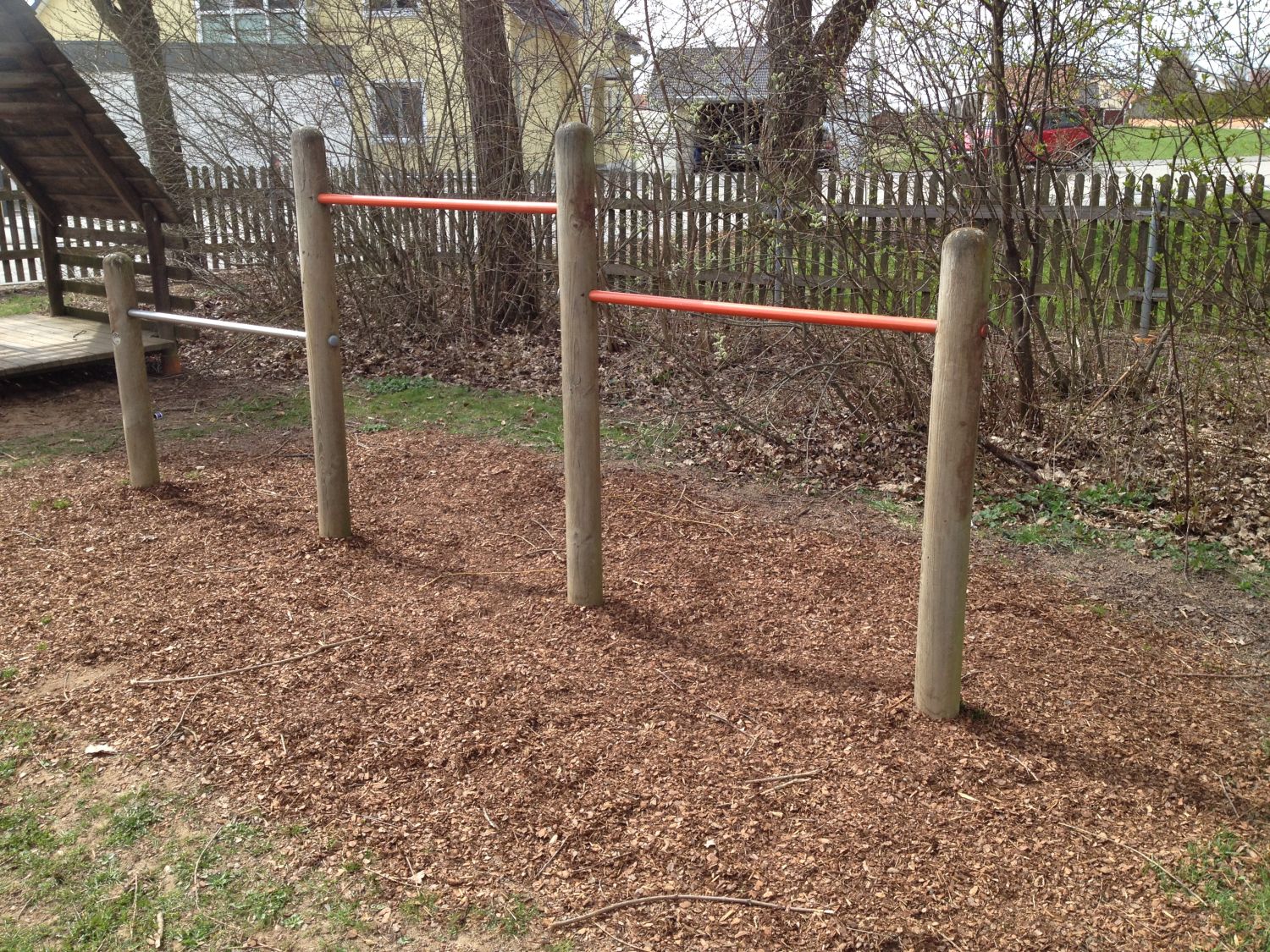 Seilbahn, Sandkasten, Wippe, Schaukel, Sitzbänke, Turnstangen, Parkplatz