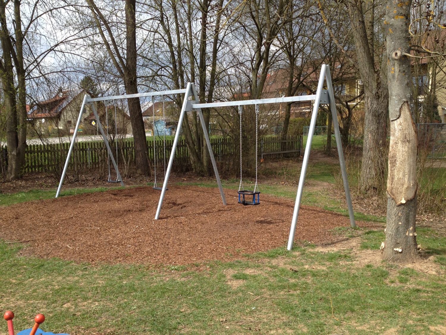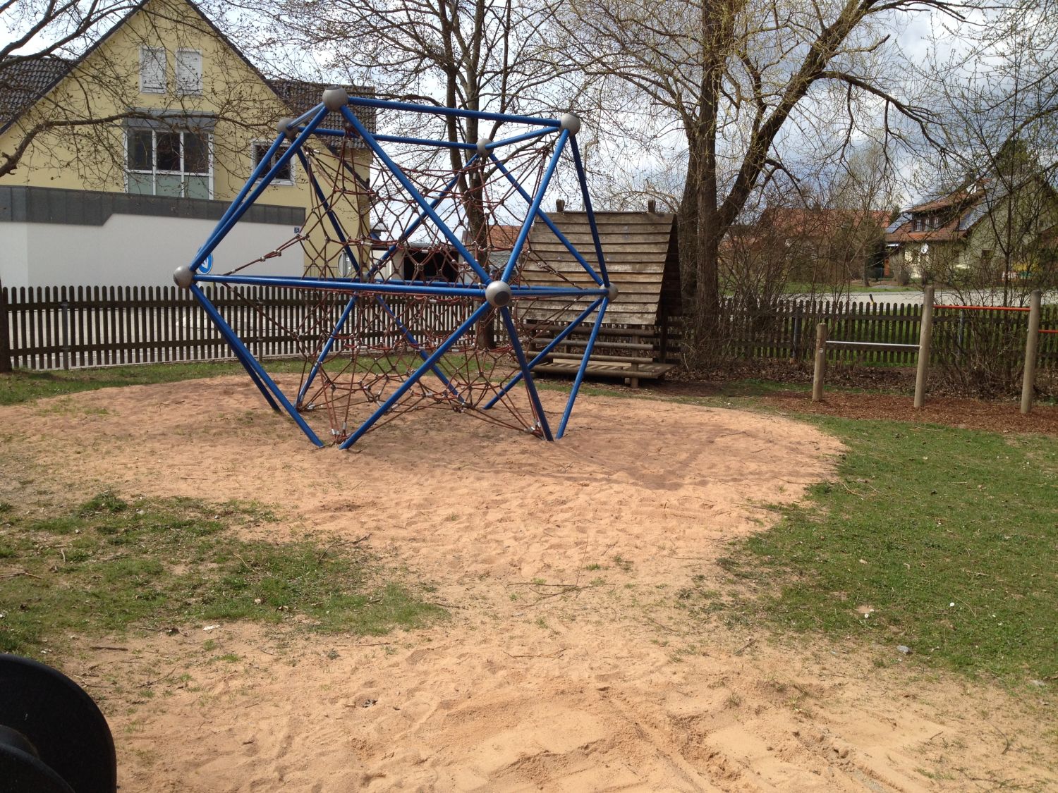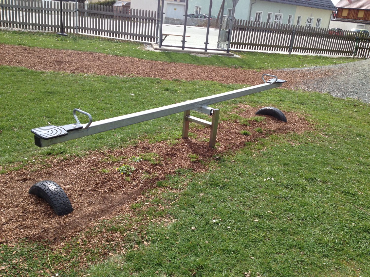 Sandkasten, Rutsche, Kletternetz, Kletterhaus, Turnstangen, Sitzbänke, Schaukel, Federtier, Bolzplatz, Seilbahn, Vogelnestschaukel